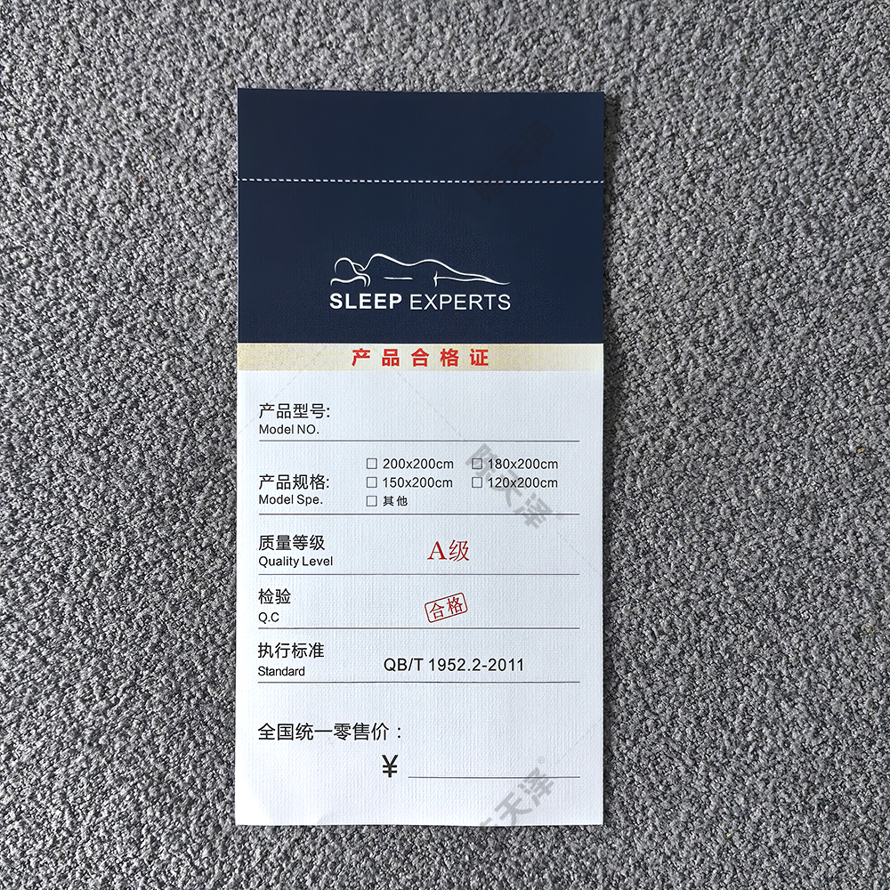 床垫商标床垫合格证席梦思商标水洗标签质量家具质保卡标签唛头