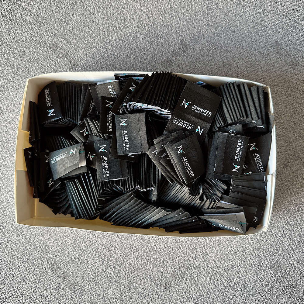 常规规格:刺绣正标:18.5*11cm,四色标:22*5.5cm,价格签:8*14cm,合格证:8*24cm,不干胶发货单:25*15cm,小布标:4*6cm。
