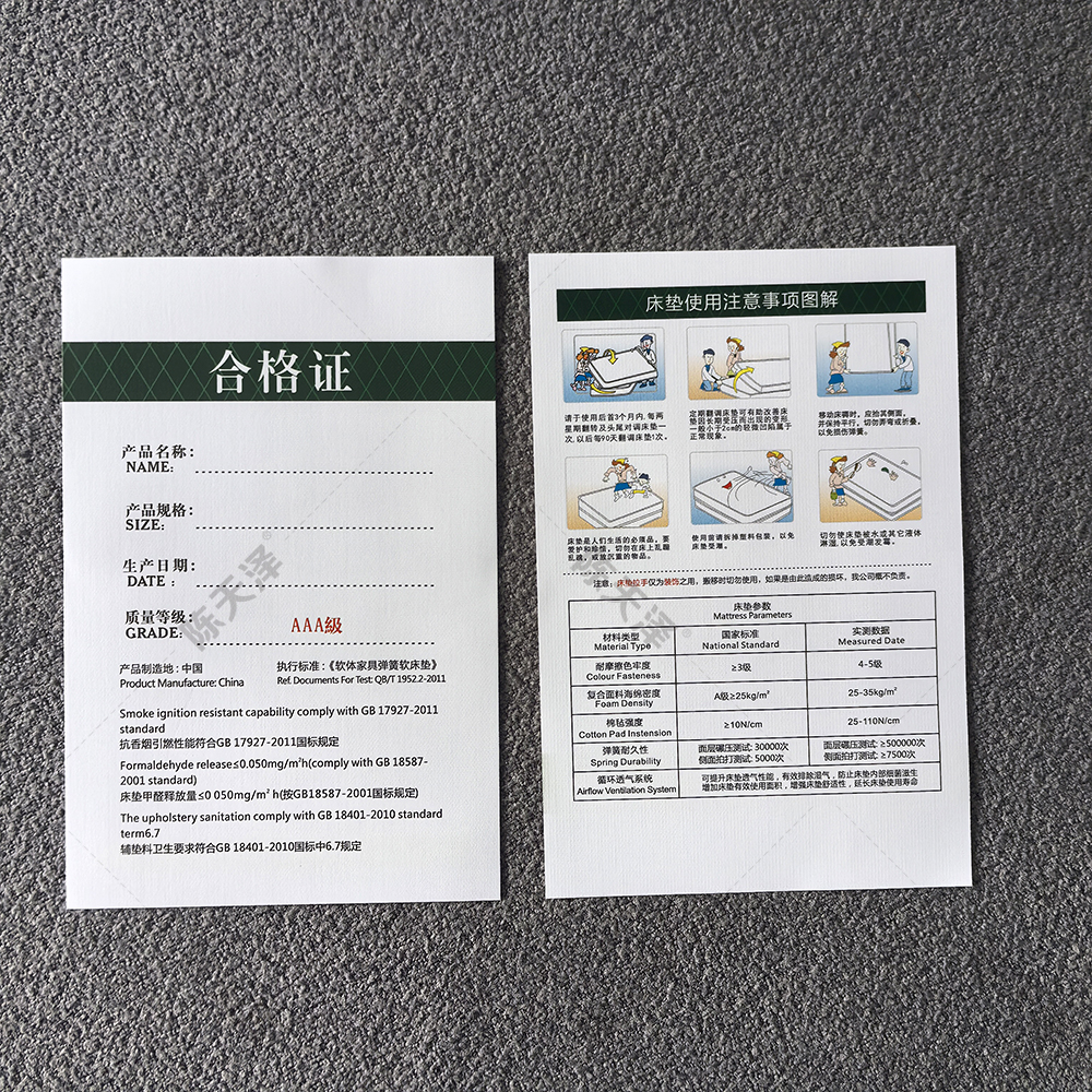 床垫商标床垫合格证席梦思商标水洗标签质量家具质保卡标签唛头
