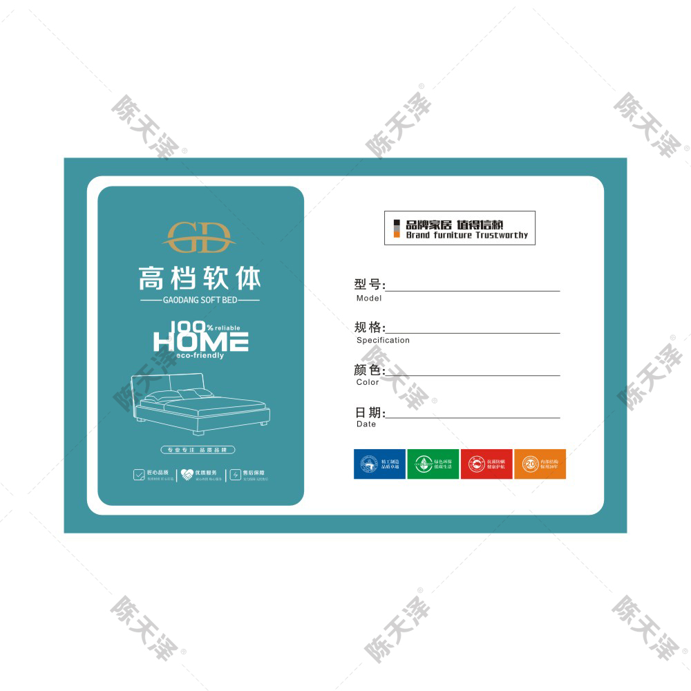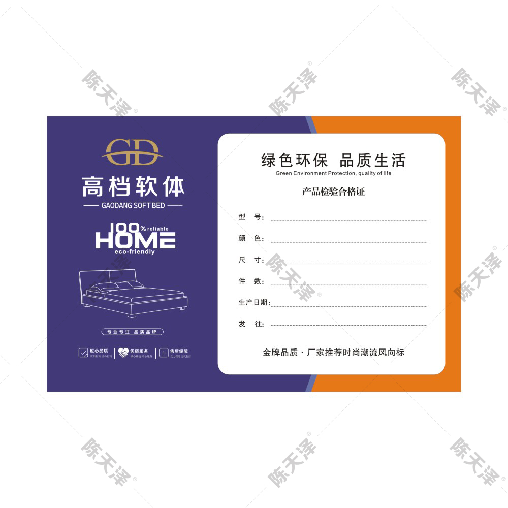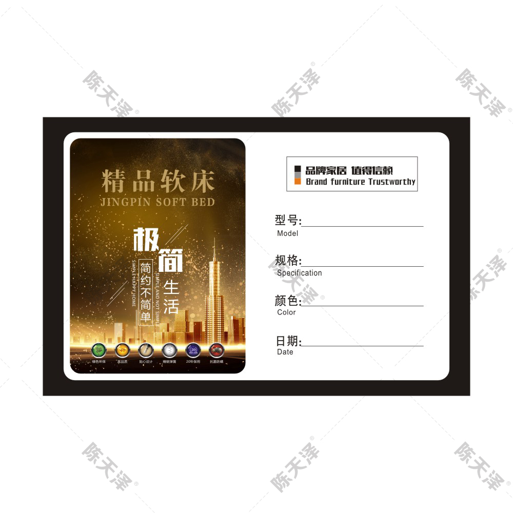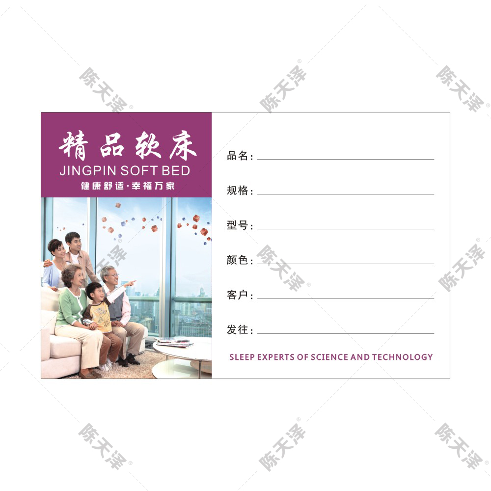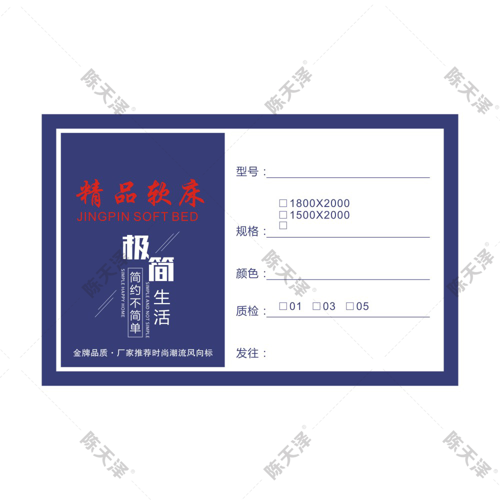 产品名称:通用款软床发货单精品软床家居不干胶贴合格证软体家具粘贴标